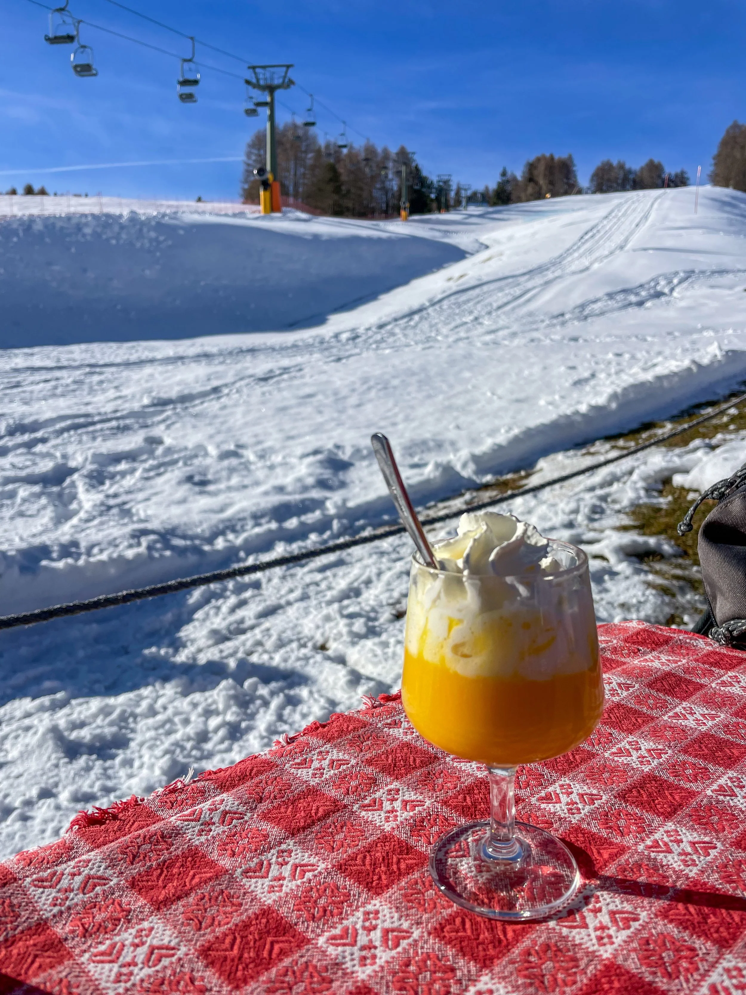 We tried a cute electric orange drink called a “bombardino” or “little canon”. Very strong!