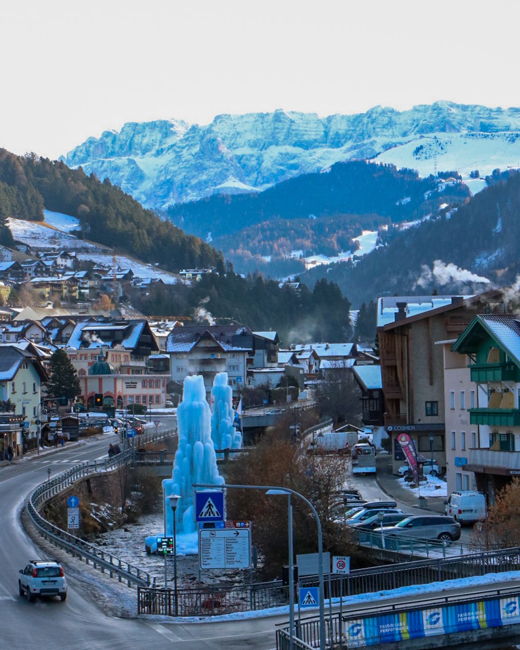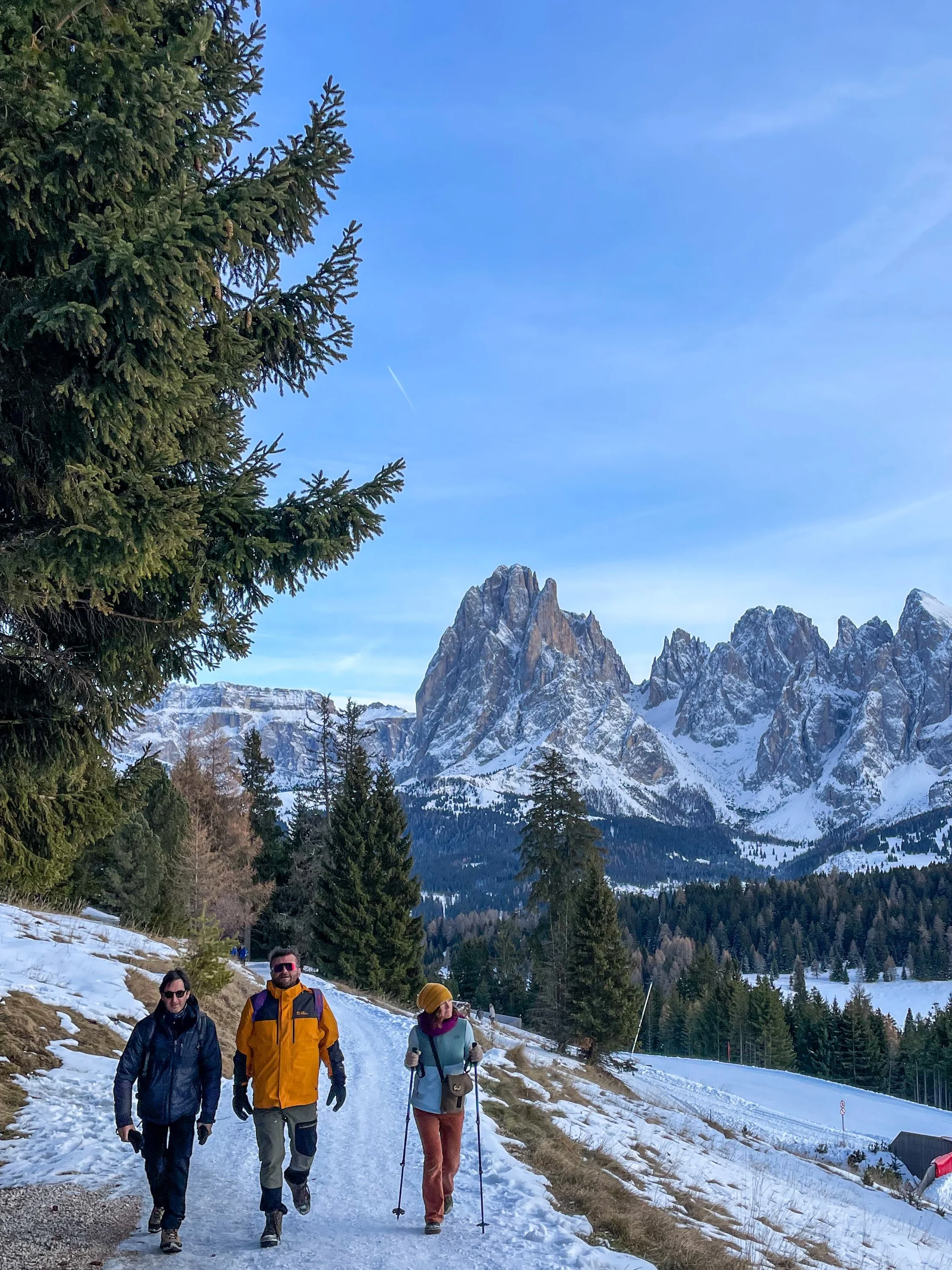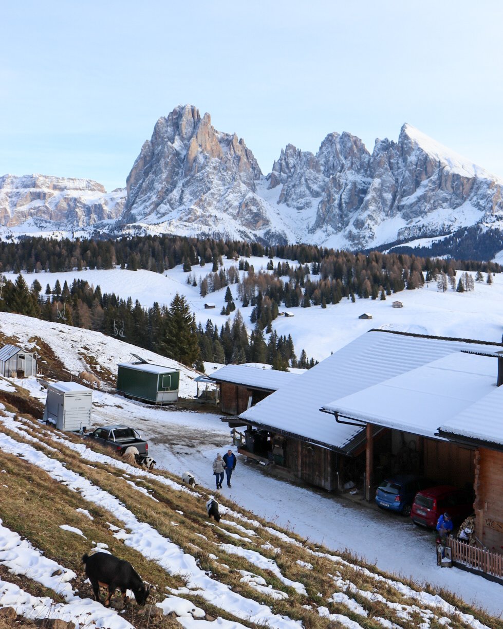 On this recent trip in December, my friend and I stayed outside of Bolzano, which you can see on the very Western part of the map near the bottom. We drove to Gruppo Sella, parking the car in the town of Ortesei.