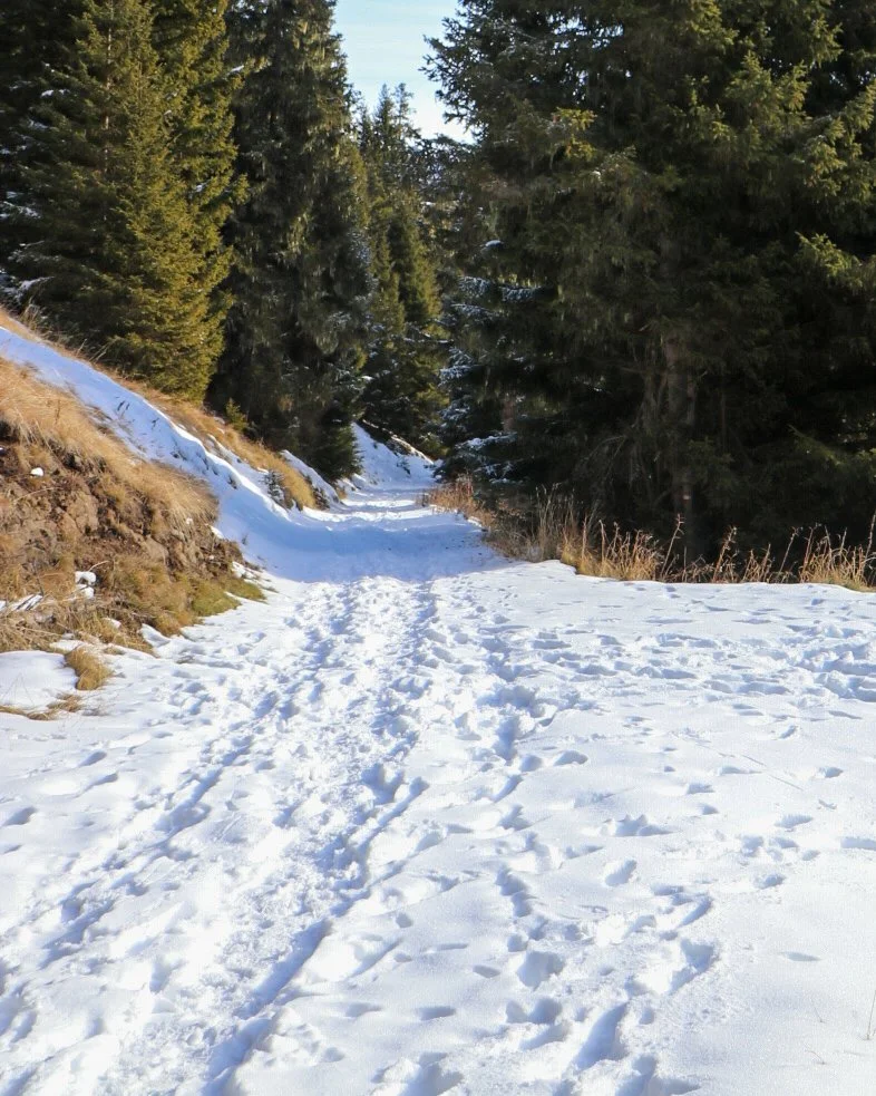 We were advised that we didn’t need snowshoes or spikes, but that hiking poles would be a good idea, so we rented those for 8 euros a pair and set out on the trails.