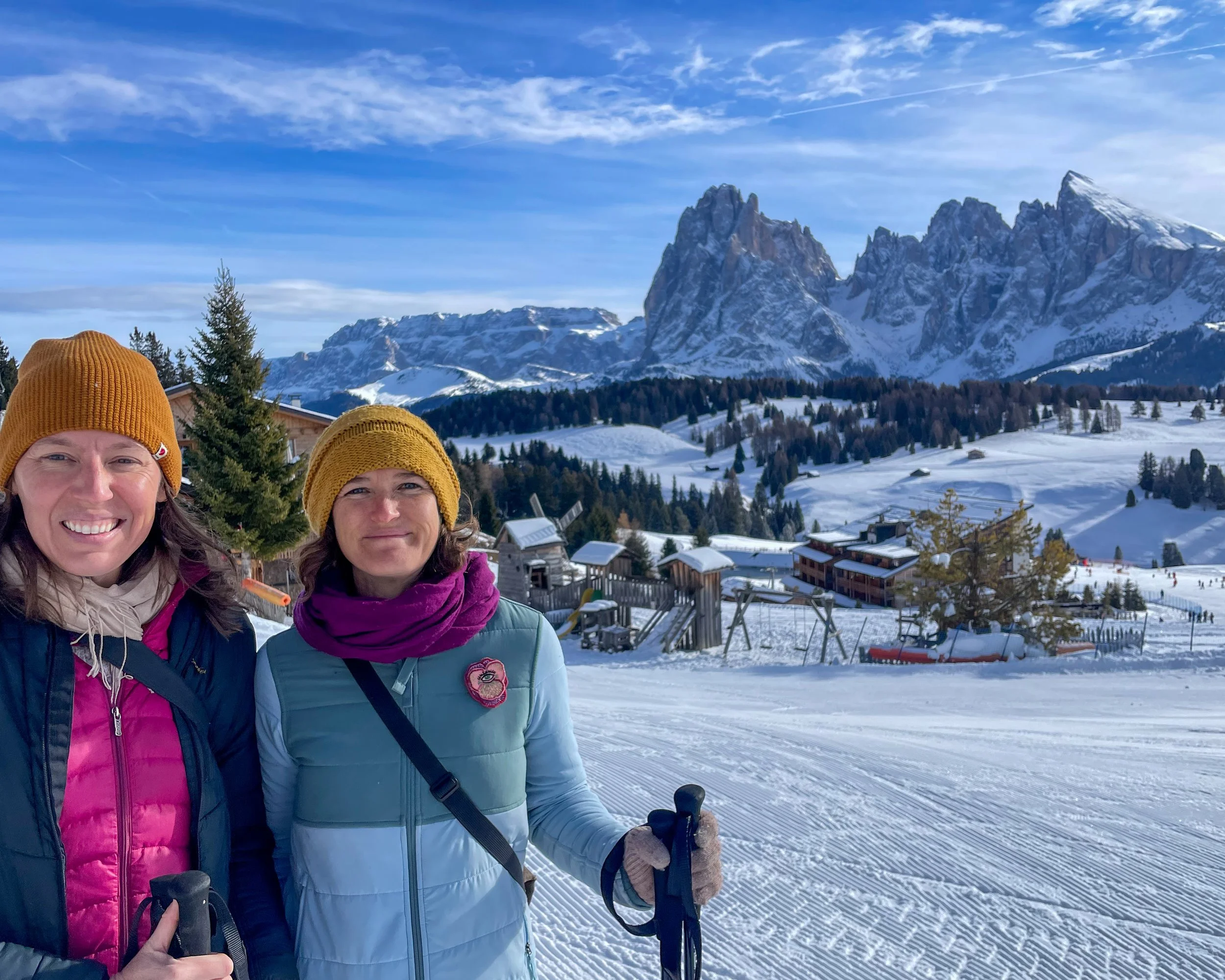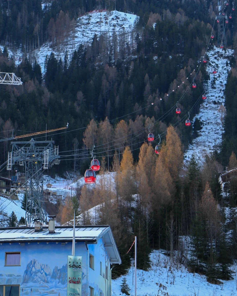 There were multiple gondolas to go up to the top of the mountains. At first, we picked the wrong one, but the woman at the ticket counter advised us on which one to use to get to hiking trails, as we weren’t skiing. We walked across the cute town to Ortisei - Alpe di Siusi cable car and took it up to the trails.