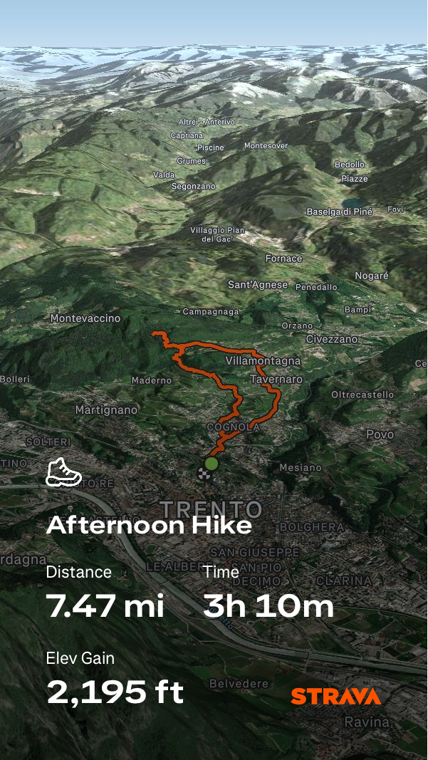 We decided we weren’t feeling done so in the afternoon we did a bigger, longer hike at 7.5 miles to Monte Calisio on the Eastern side of the city.